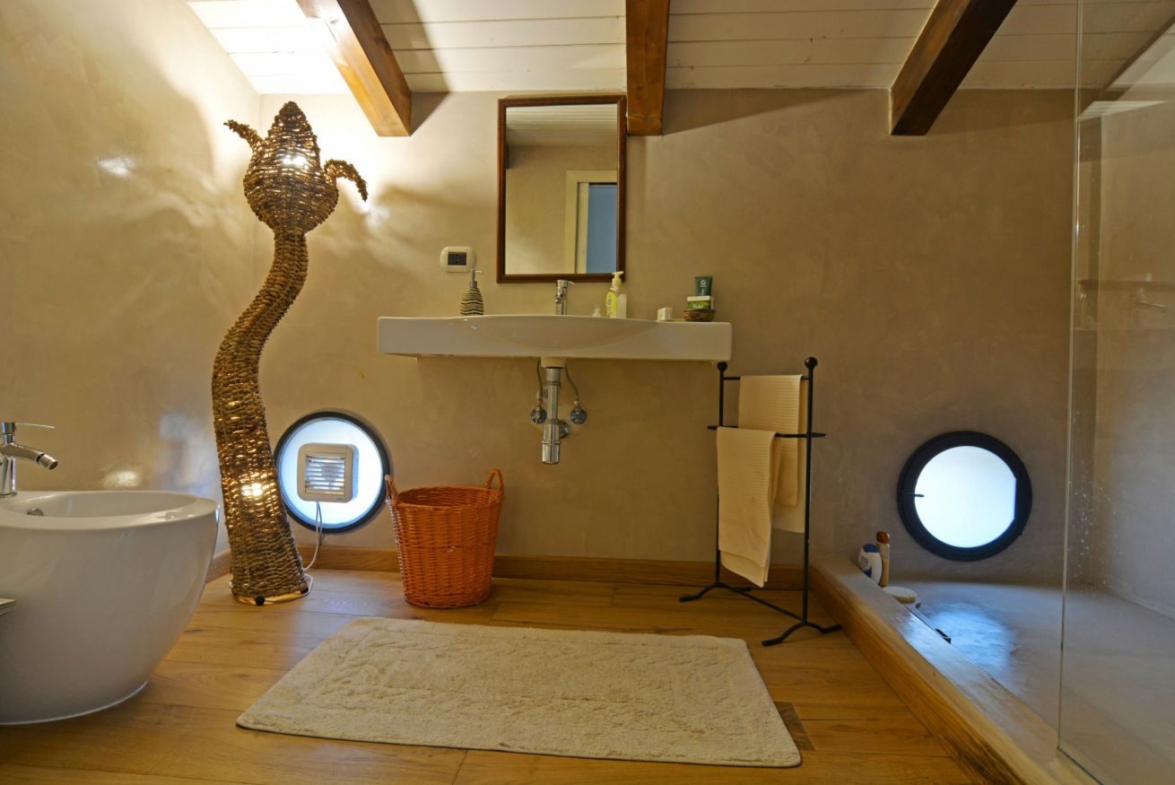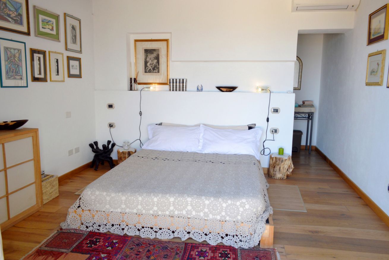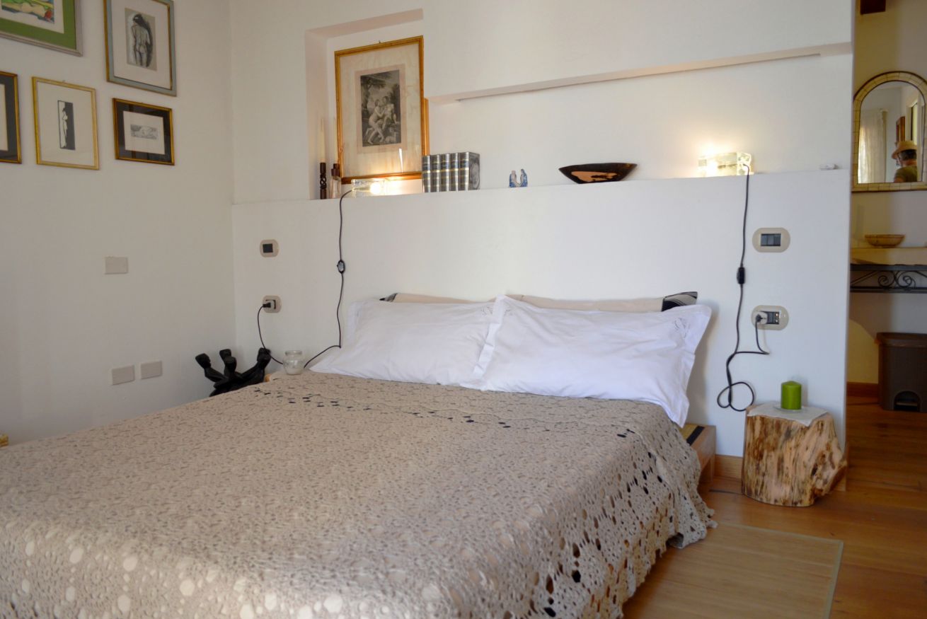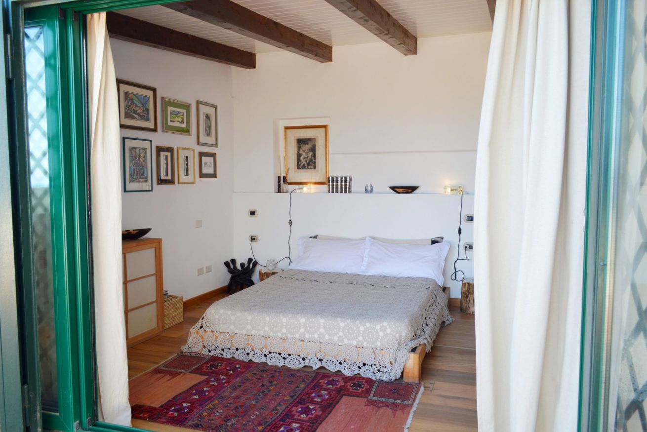 Alla Suite, situata al piano superiore, si accede attraverso un soppalco studio privato. La camera dispone di un letto matrimoniale, bagno privato interno e terrazzo vista mare.